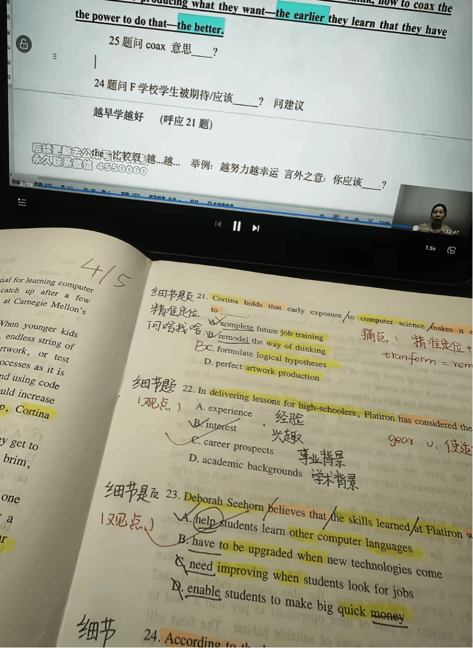 我一直觉得,考研比的不是 “谁熬夜更久”“谁刷题更多”,而是 “谁的效率更高”。所以我没走 “磨洋工” 的老路,反而针对不同学科找了适合自己的方法。英语从第一天到考前,每天雷打不动用 APP 背单词,真题不贪多,每篇阅读都逐字翻译,连选项的 “对错逻辑” 都要理清楚;专业课要背的内容多,我先整理出自己的知识框架,再合上书本试着 “讲” 出来,卡壳的地方就标记好,回头重点突破;政治起步晚,就先跟着课程搭框架,避免知识点记混,后期背素材时也结合记忆表反复巩固。学得专注,休息时也彻底放松,累了就去操场跑两圈、听首歌,劳逸结合才让我整个备考期都没掉过学习状态。