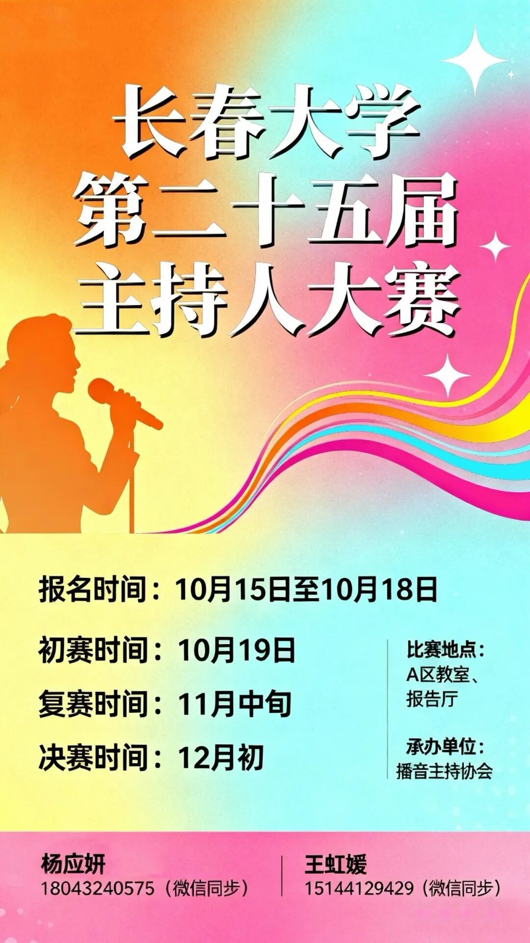 长春大学第二十五届主持人大赛,等你来用声音传递力量,用激情点燃全场!