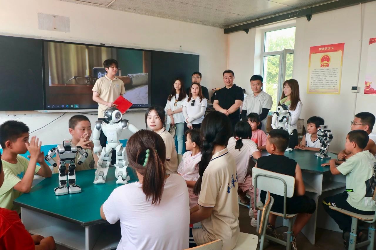 柳条乡农阁小学位于吉林省四平市双辽市柳条乡农阁村,在当地政府和相关部门支持下,为学生提供基础教育服务。计算机科学技术学院志愿者们精心策划并开展了“AI知识进乡村”主题宣讲活动,将人工智能的核心概念及发展趋势传递给乡村学子,随后通过面对面展示机器人并通过通俗易懂的讲解,让学校的孩子们深刻感受到了科技的魅力。