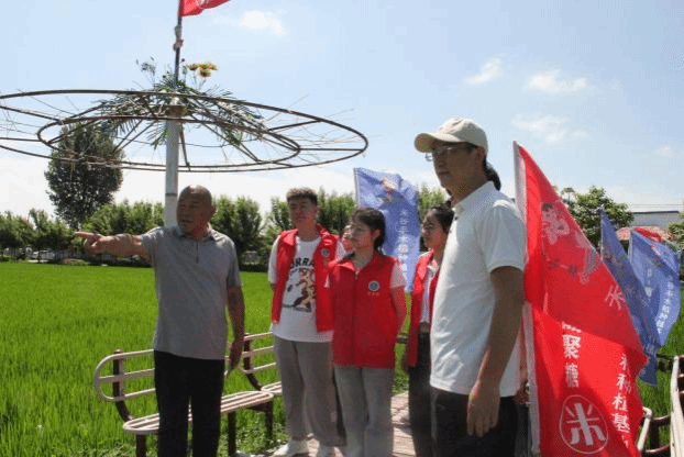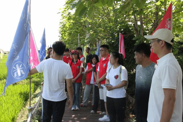 师生在吴家村人参稻田边考察交流