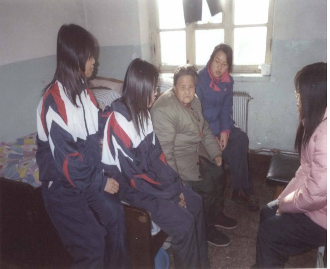 敬老院有一些身体残疾的老人,志愿者们又来到行动不便的老人们的卧室,帮爷爷奶奶剥橘子,洗衣服,打扫房间卫生,承欢于老人膝下,陪他们聊天解闷,增加心与心的交流。同学们和自己的爷爷奶奶下棋,给他们讲笑话,听爷爷、奶奶讲述他们过去的故事,像真正的家人一样祖孙同乐,其乐融融。