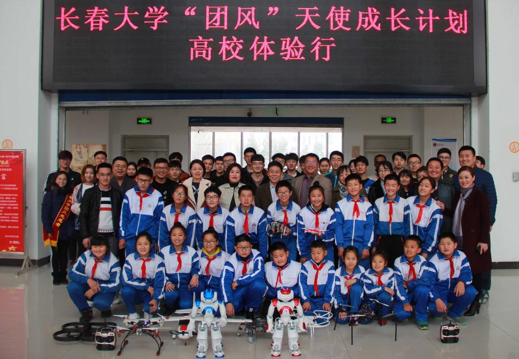“团风”天使们在校参加高校体验行期间,校团委安排了一系列丰富多彩的活动,在我校10名“团风”志愿者的陪伴下,同学们走进大学课堂、大学生食堂体验大学学习与生活。他们在特殊教育展馆了解了我校特殊教育30年的发展历程,在“团风”展馆聆听了“团风”精神的产生、传承与弘扬;在校园文化建设微广场观看了由电子信息工程学院、计算机科学技术学院共同展出的机器人表演、飞行器模型展示、巡迹小汽车和飞思卡尔小汽车展示,全体师生在现场进行动手操作与互动,并在学校报告厅观看了爱国题材影片《战狼Ⅱ》。“团风”志愿者们还带领同学们参观了空军航空大学航空展馆、长春伪满皇宫博物院、吉林省自然博物馆等地,让“团风”天使们深深的感受了长春这座历史文化名城的都市气息。