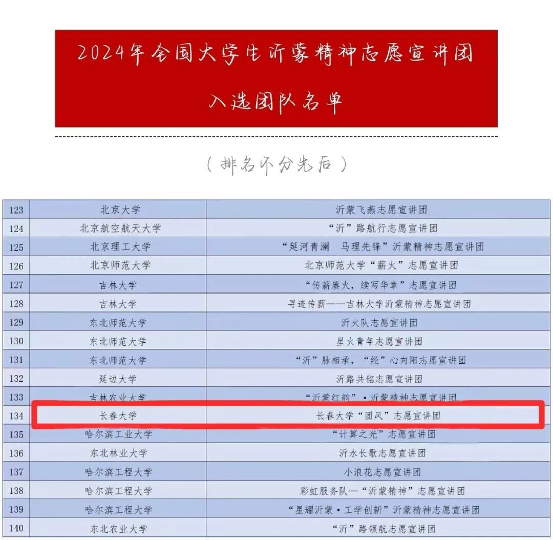 近日,团中央青年志愿者行动指导中心发布了2024年全国大学生沂蒙精神志愿宣讲团入选团队名单,我校“团风”志愿宣讲团成功入选,本次入选共有来自北京大学、山东大学、华中科技大学等466所高校的1000支大学生志愿服务团队。