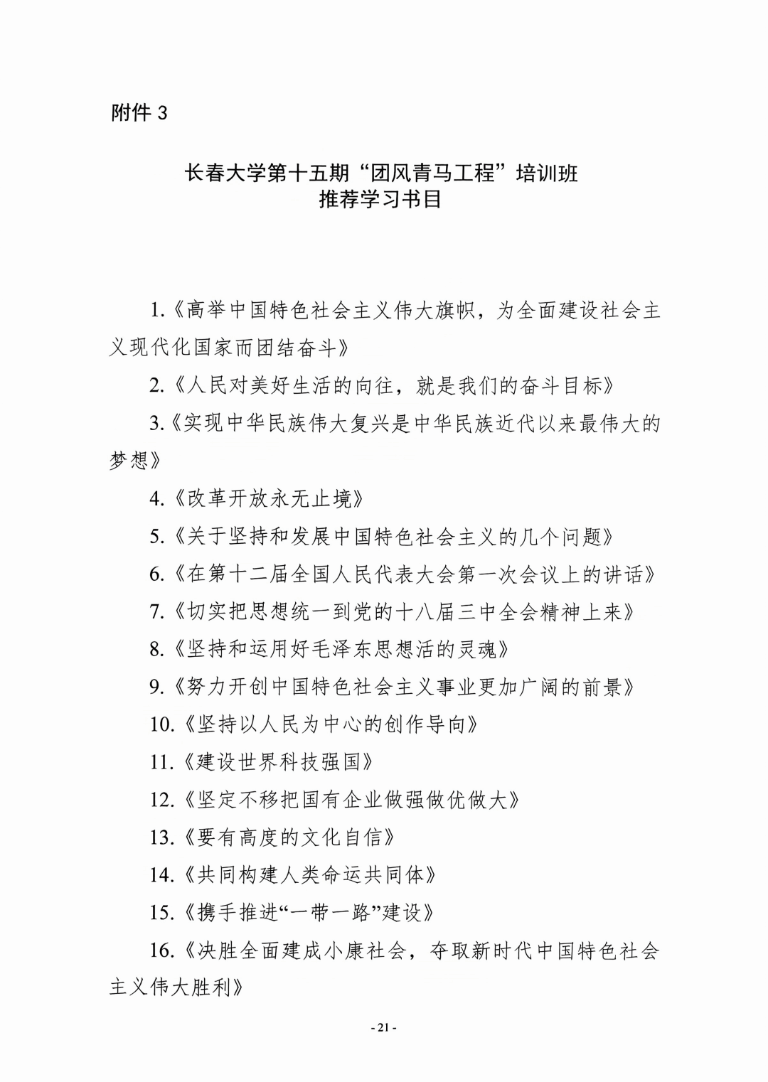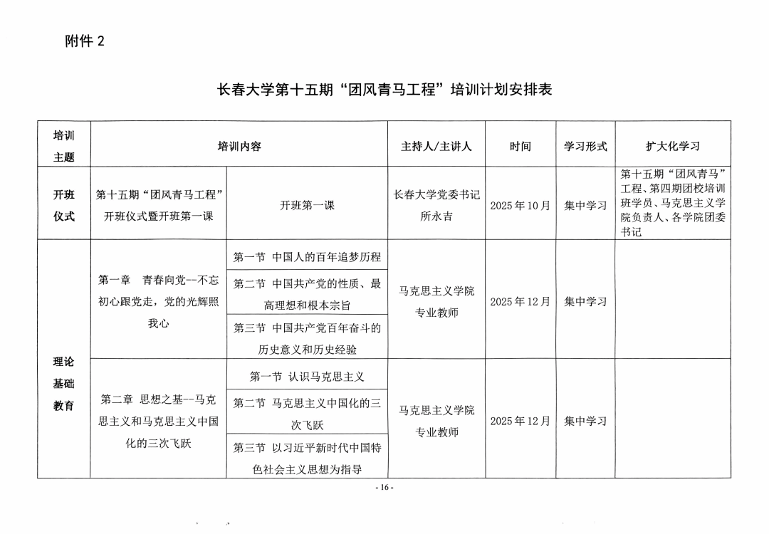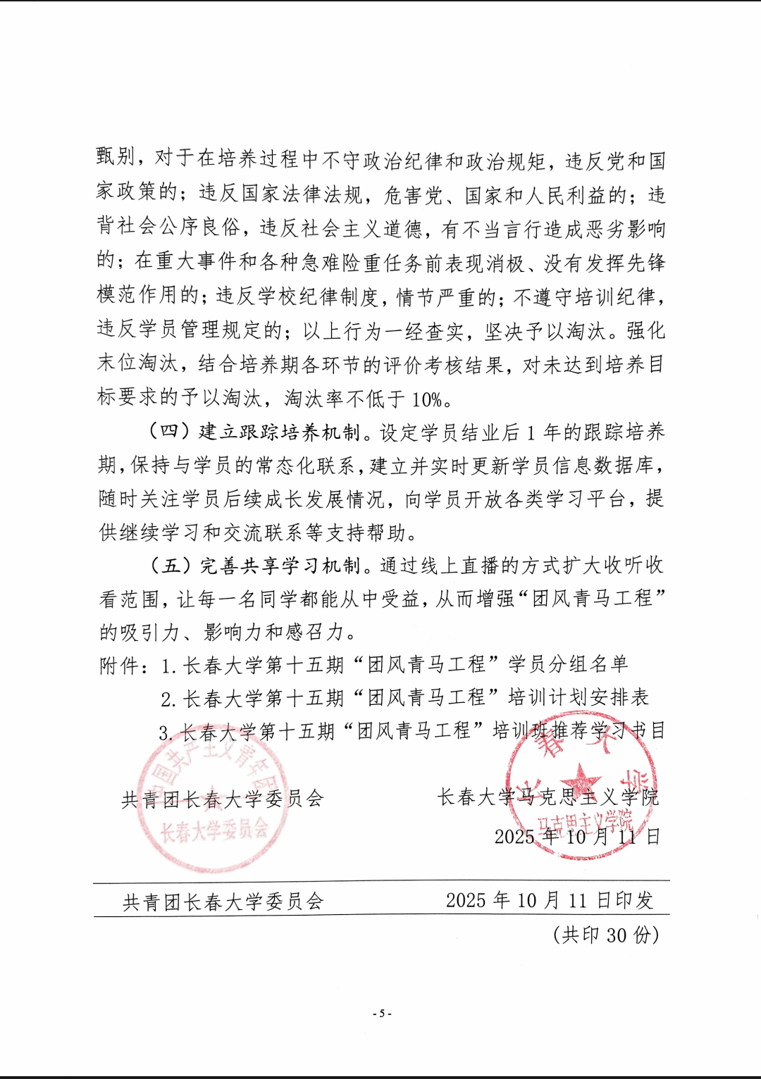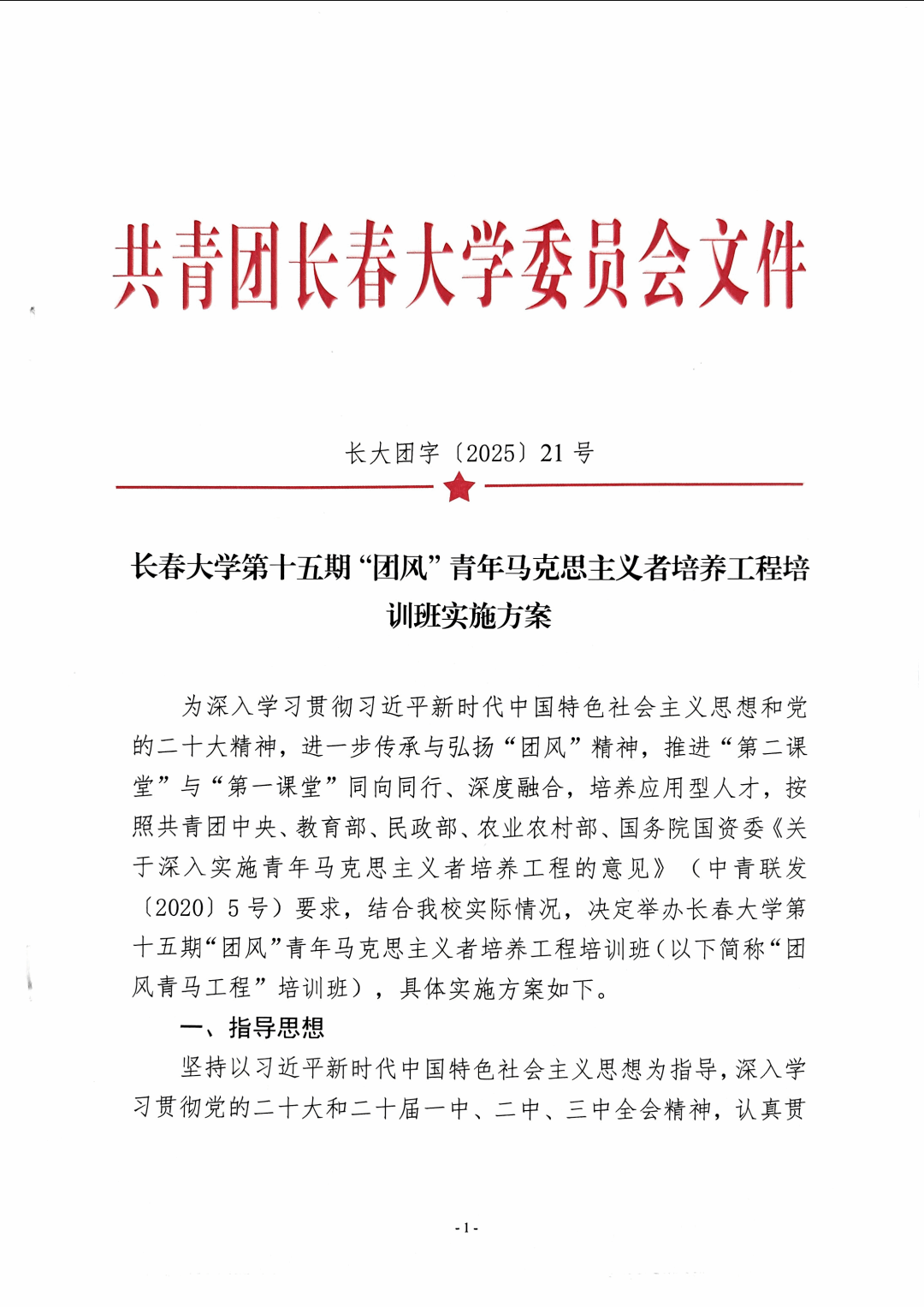 长春大学第十五期“团风”青年马克思主义者培养工程培训班实施方案