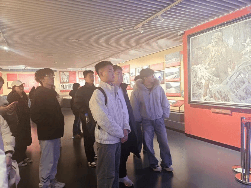 2025年11月9日上午,长春大学第十五期“团风青马工程”培训班第六组16位学员在指导教师隋洪波的带领下,赴吉林省近现代史展览馆开展以“赓续红色血脉 铸就时代新魂”为主题的社会实践活动。此次参观旨在通过深入了解吉林“三地三摇篮”红色文化精神,增强青年学生的历史使命感与责任感。
